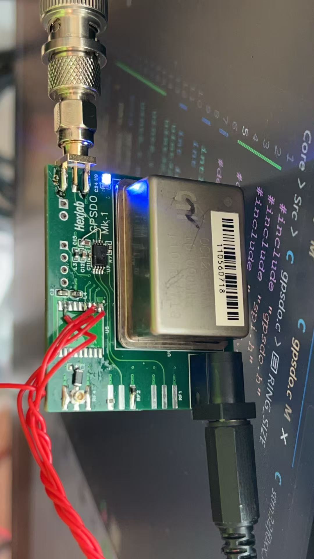 The GPS-Disciplined Oscillator (GPSDO) project aims to create a precision frequency reference by locking a high-quality oven-controlled crystal oscillator (OCXO) to GPS timing signals. This project achieved at minimum 40 parts-per-billion (ppb) long-term frequency accuracy (limited by testing device).