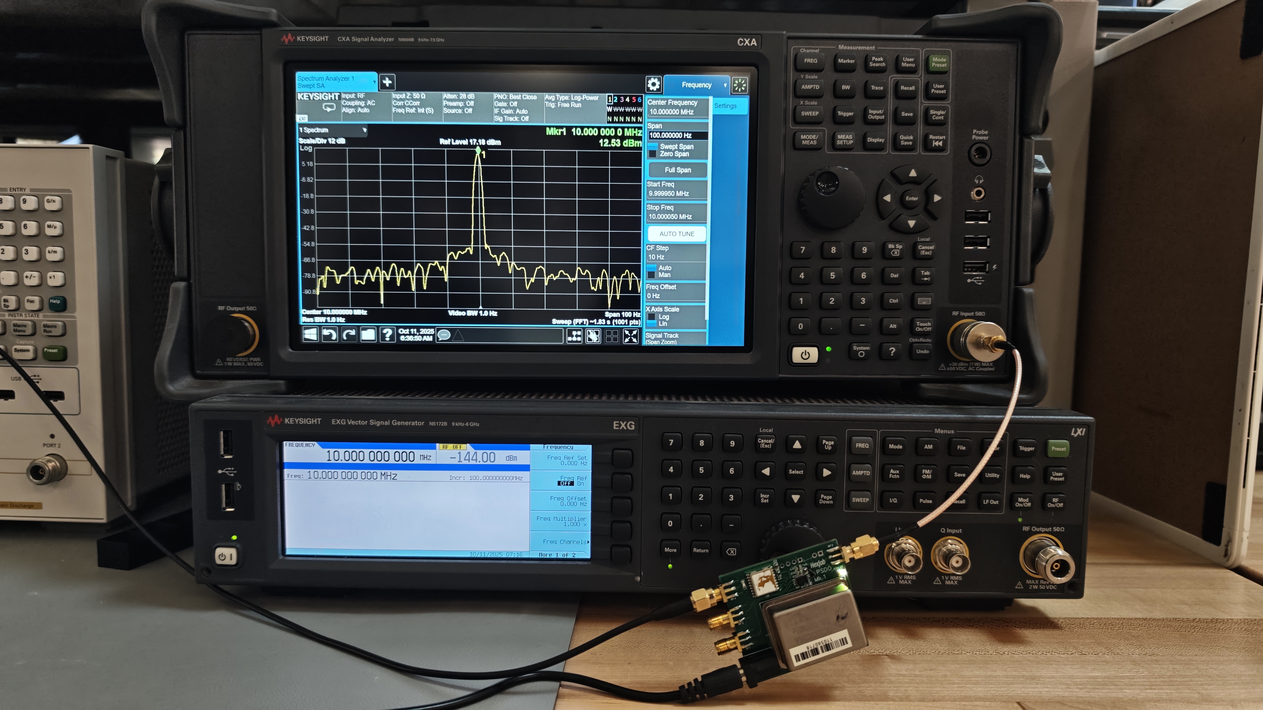 Testing was performed using Keysight CXA signal analyzer and EXG vector signal generator as reference.