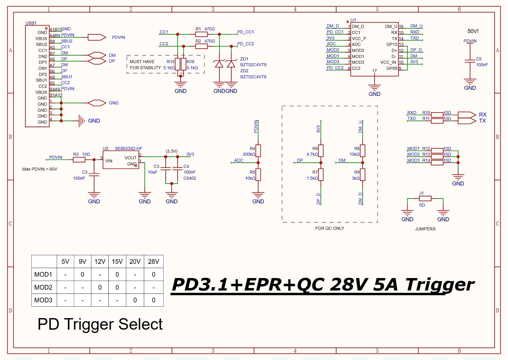 - PD 3.1 trigger negotiates 28V @ 140W max